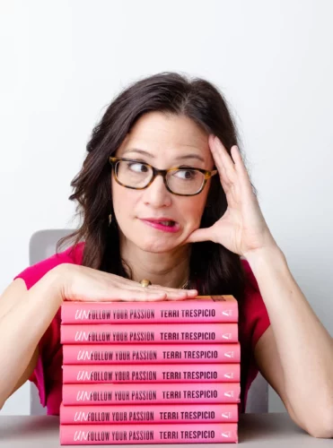 Terri Trespicio is an award-winning writer, speaker, and brand advisor, and the author of Unfollow Your Passion: How to Create a Life that Matters to You (Atria/Simon & Schuster, December 2021). She helps individuals and organizations to nail their messaging and engage clients, customers, and fans. She also leads writing workshops and retreats all over the country to help people tap their creative genius. Her TEDx talk, “Stop Searching for Your Passion,” has more than 7 million views. She was recently named by Hubspot as one of the “Top 18 female speakers who are killing it” and cited as one of the world’s leading creatives by Creative Boom magazine. A former magazine editor and radio host at Martha Stewart, she has appeared on the Today show, Dr. Oz, The Early Show, The Martha Stewart Show and The Anderson Cooper Show. Her work has been featured Oprah magazine, Marie Claire, Prevention, Business Insider, Forbes.com, and Inc.com. She leads several events and retreats each year for people who want to surface their own creative genius, including the Six Week Sprint. An in-demand, top-rated speaker, Terri is also a stand-up comic and has performed all over New York City and beyond. Terri earned her BA in English from Boston College and a MFA in Creative Writing in 2002 from Emerson College, where her thesis, a collection of poetry, won the Graduate Dean Award. A finalist for the Iowa Award and Glimmer Train, her literary work has appeared in The Greensboro Review, New Millenium Writings, and The Baltimore Review, where she won first place in their 2016 creative nonfiction contest. She lives in Manhattan.